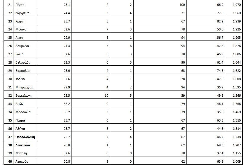 Η Κρήτη παίρνει την πρώτη θέση ως το καλύτερο μέρος στην Ελλάδα για LGBTQ+ γνωριμίες με 1.939 συνολικό σκορ, έχοντας τα περισσότερα gay-friendly bar και clubs βάσει του TripAdvisor αλλά και από τις 40 πόλεις της λίστας η Κρήτη βρίσκεται στην 23η θέση. Οι άλλες πόλεις στην Ελλάδα και Κύπρο που βρίσκονται στην λίστα είναι η Πάτρα (35η θέση), Αθήνα(36η), Θεσσαλονικη (37η), Λευκωσία(38η) και η Λεμεσός (40η).
