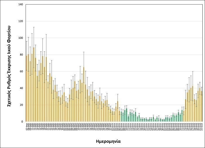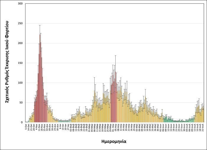 Η δυναμική της διασποράς του σχετικού ιικού φορτίου στα λύματα δείχνει μια προσωρινή σταθεροποίηση, που μπορει να αποδοθεί στην εντονη κινητικότητα των πολιτών και επισκεπτών της πόλης λόγω καλοκαιρινών μετακινήσεων.