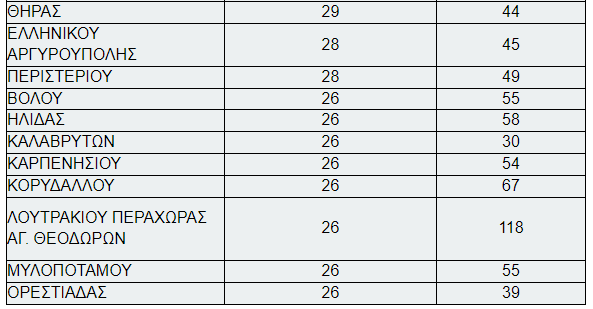 Οι 25 δήμοι της χώρας, που προσφέρουν στους πολίτες τους τις περισσότερες υψηλού επιπέδου υπηρεσίες είναι: