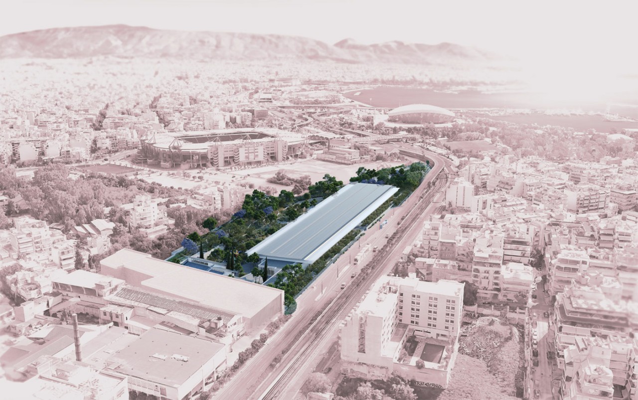 τεχνητά υπερυψωμένου κήπου, κάτω από το ψηλότερο επίπεδο του οποίου κατασκευάζεται κτίριο στάθμευσης κ.ο.κ.. Επιπλέον εγκρίνεται και η ένταξη της κατασκευής στήριξης των φωτοβολταϊκών πάνω από το δώμα του κυρίως κτιρίου (ενεργειακού στεγάστρου) στη μορφολογία του κτιρίου και του δομημένου περιβάλλοντός του, χωρίς παρέκκλιση του μέγιστου επιτρεπόμενου ύψους της περιοχής και του ιδεατού στερεού.