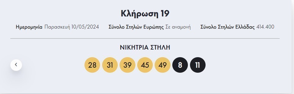 Οι τυχεροί αριθμοί που ανέδειξε η κλήρωση του Eurojackpot το βράδυ της Παρασκευής 10/5/2024 είναι οι εξής: