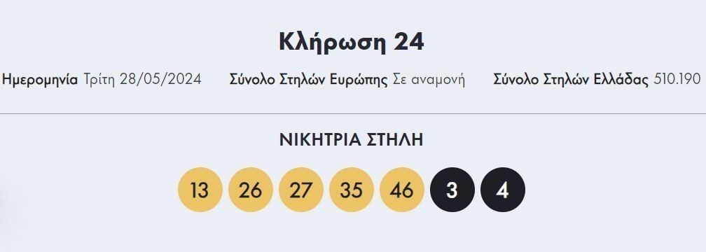 Οι τυχεροί αριθμοί που ανέδειξε η κλήρωση του Eurojackpot το βράδυ της Τρίτης 28/5/2024 είναι οι εξής: