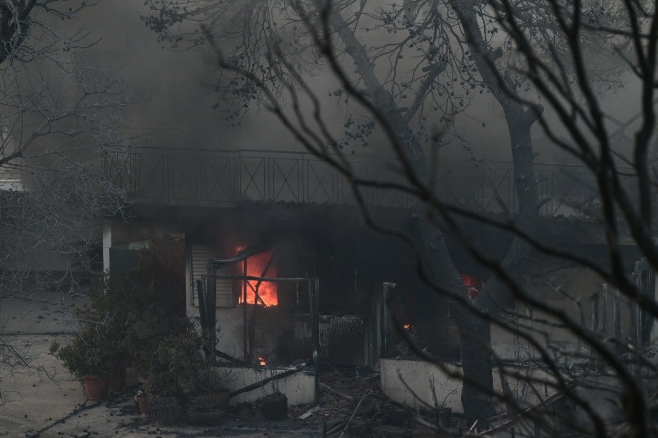 Η φωτιά καίει εκτός ελέγχου και αλλάζει συνεχώς κατεύθυνση. Χαρακτηριστικό είναι ότι μέσα σε μισή ώρα έφτασε από τη λεωφόρο Διονύσου στην Πεντέλη και στη συνέχεια κατευθύνθηκε προς τη Νέα Μάκρη. Οι άνεμοι βοήθησαν τη φωτιά να διανύσει μια τεράστια απόσταση, καίγοντας τα πάντα στο πέρασμά της, με το μήκος του μετώπου να φτάνει τα 30χλμ. Σύμφωνα με τον πυρομετεωρολόγο Θεόδωρο Γιάνναρο η φωτιά μέσα σε λιγότερες από 12 ώρες «έτρεξε» απόσταση μεγαλύτερη των 30-40χλμ