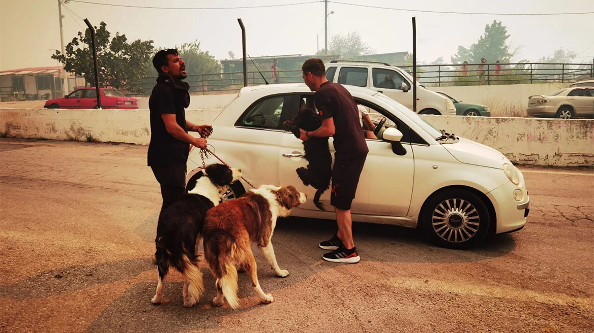 Εικόνες του protothema.gr από τον Άγιο Ιωάννη Ρώσο στην περιοχή που εκκενώνεται δείχνει τους πολίτες να προσπαθούν να σώσουν ό,τι σώζεται και κυρίως τα κατοικίδιά τους.