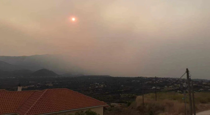 Στην εικόνα, διακρίνεται ο πυκνός καπνός που έχει καλύψει τον ουρανό αρκετών περιοχών της χώρας μας.