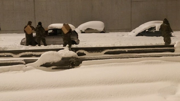 Χιλιάδες οδηγοί αυτοκινήτων πέρασαν τη νύχτα εγκλωβισμένοι στα οχήματά τους μετά την παράλυση της κυκλοφορίας σε σημαντικές οδικές αρτηρίες, όπως η Αττική Οδός. Ο στρατός ανέλαβε τη μεταφορά αποκλεισμένων σε προσωρινά καταλύματα.