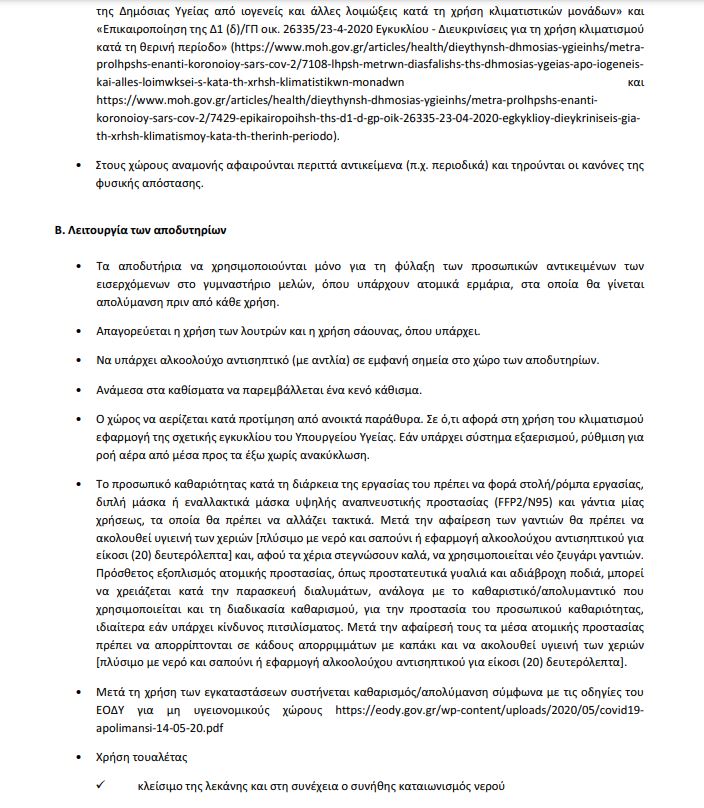 Αναλυτικά το πρωτόκολλο λειτουργίας των γυμναστηρίων