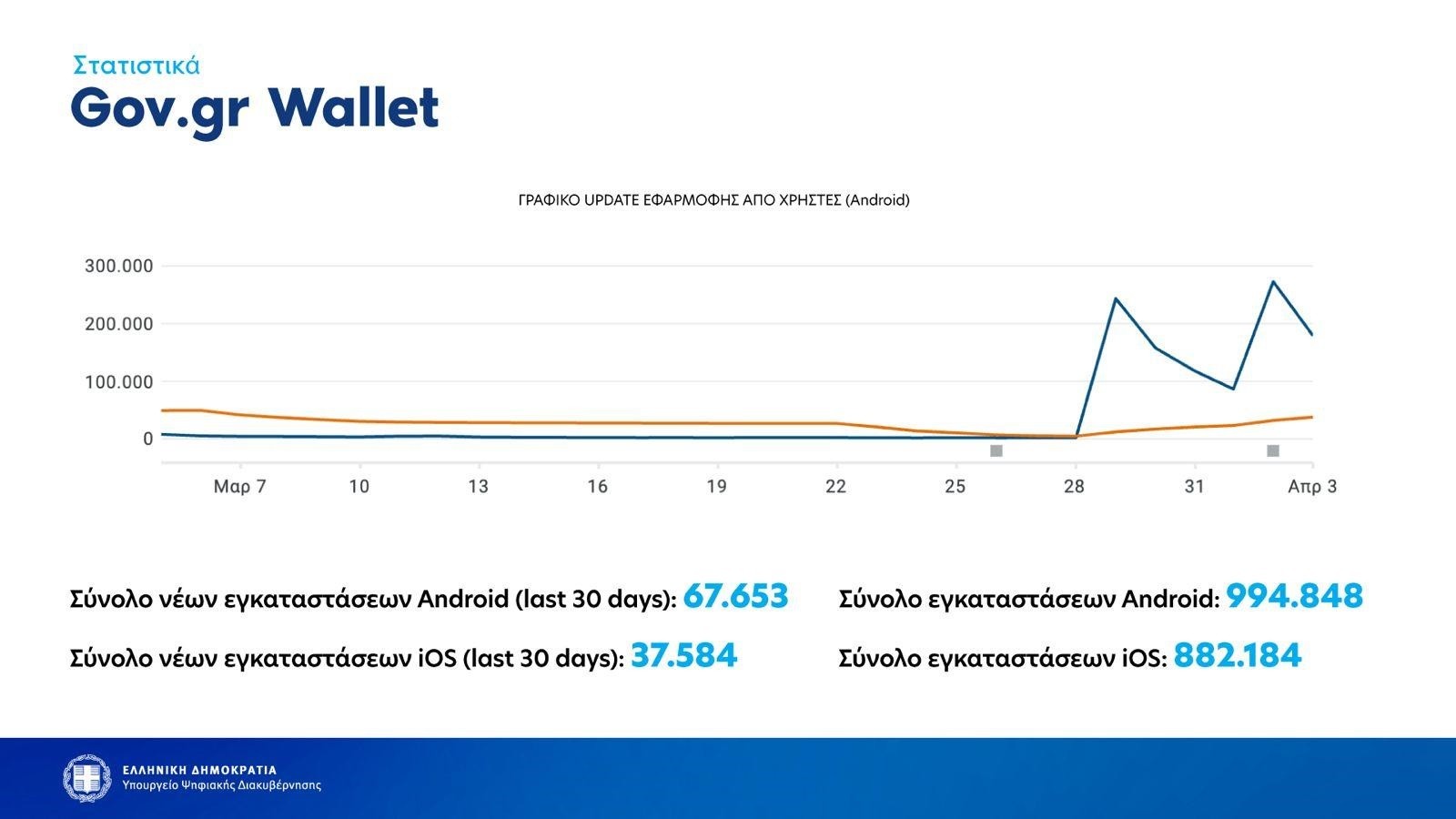 Τις τελευταίες τριάντα ημέρες, 105.237 χιλιάδες πολίτες «κατέβασαν» το gov.gr wallet στο κινητό έχοντας κατά νου την επιστροφή τους στις κερκίδες στις 9 Απριλίου, ενώ ο συνολικός αριθμός των Ελλήνων που «απέκτησε» ψηφιακό πορτοφόλι – από την έναρξη της λειτουργίας του τον Ιούλιο του 2022- υπολογίζεται στο 1.877.032, σύμφωνα με το ΑΠΕ-ΜΠΕ.