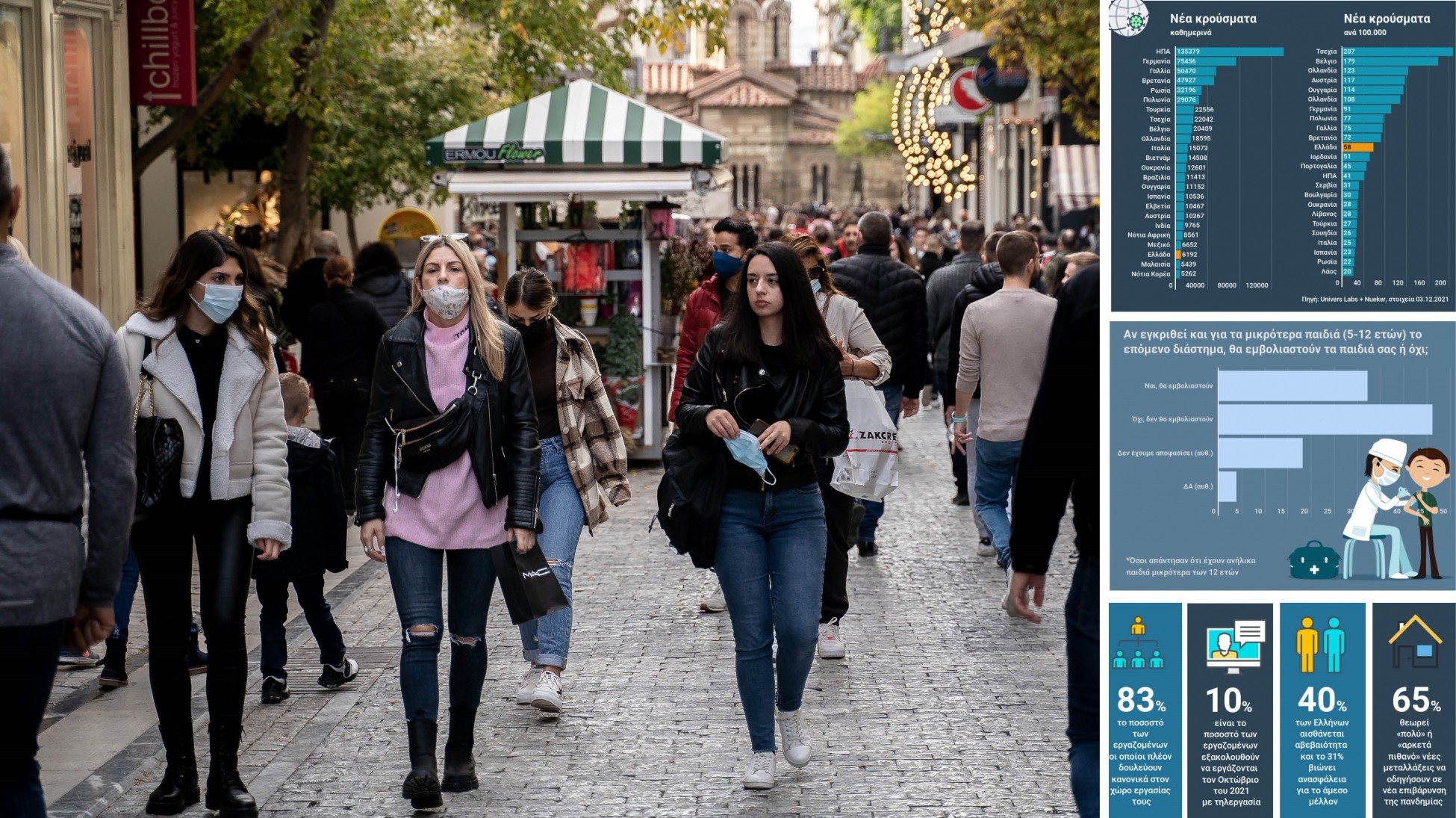 Από την έρευνα προκύπτει ότι το ποσοστό των εμβολιασμένων αυξάνεται ανάλογα με την ηλικία και με το μορφωτικό επίπεδο, ενώ χαμηλότερα του 65% ποσοστά εμβολιασμού εμφανίζουν μόνο οι αγρότες, οι άνεργοι, όσοι δηλώνουν επάγγελμα “οικιακά” και όσοι ζουν σε περιοχές με λιγότερους από 2.000 κατοίκους.
