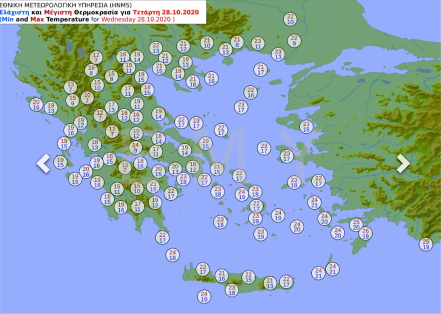 ΠΡΟΓΝΩΣΗ ΓΙΑ ΣΗΜΕΡΑ ΤΕΤΑΡΤΗ 28-10-2020 (ΕΘΝΙΚΗ ΕΟΡΤΗ)