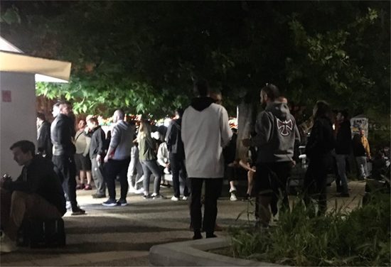 Οι περίοικοι δεν έκρυβαν την ενόχλησή τους για όσα διαδραματιζονταν, τονίζοντας ότι τίθεται άμεσα θέμα προστασίας της δημόσιας υγείας και ζητώντας την άμεση παρέμβαση των Αρχών, ώστε να διαλυθεί η συγκέντρωση. Ο κόσμος ωστόσο συνεχώς αυξανόταν, με πολλούς να προμηθεύονται αλκοόλ από σούπερ μάρκετ που λειτουργεί στην πλατεία.