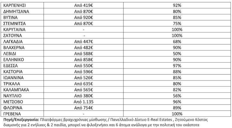 Το κόστος τετραήμερης διαμονής κυμαίνεται από 447€ έως 920€, με τις υψηλότερες τιμές να αφορούν αρχοντικά 75-120 τ.μ.