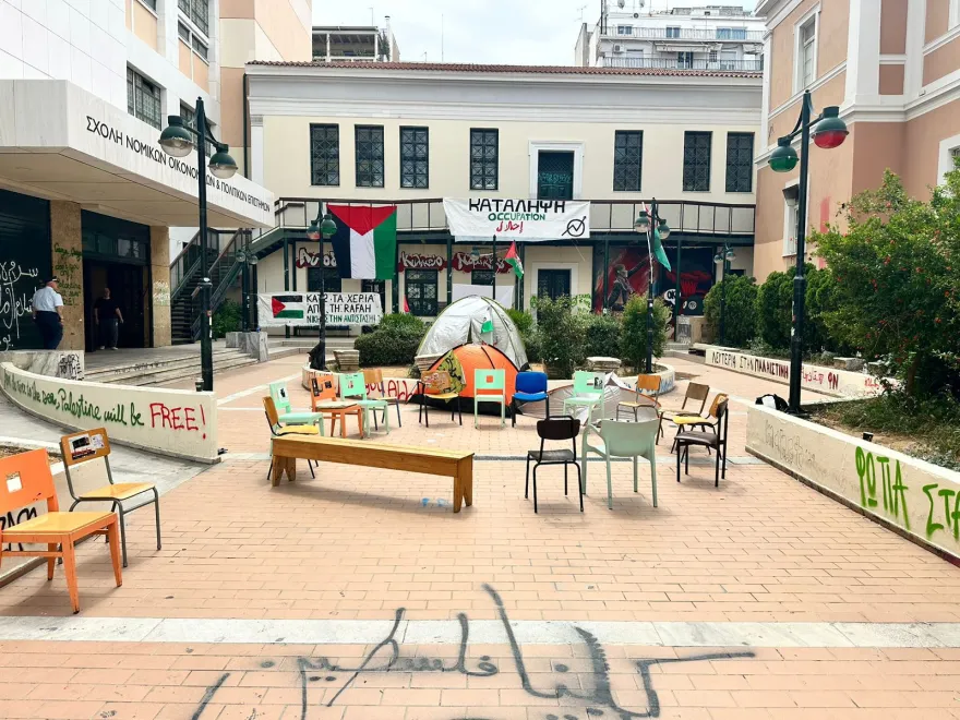 Το κτήριο βρισκόταν υπό κατάληψη από το βράδυ της Δευτέρας ως ένδειξη αλληλεγγύης στον παλαιστινιακό λαό.