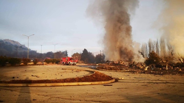 Αυτόπτες μάρτυρες μίλησαν για μικρές εστίες φωτιάς μετά την έκρηξη. Το τριώροφο ξενοδοχειακό συγκρότημα μετατράπηκε σε άμορφη μάζα.