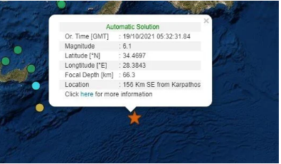 Ισχυρός σεισμός μεγέθους 6,1 Ρίχτερ σημειώθηκε νωρίς το πρωί ανοιχτά της Καρπάθου.