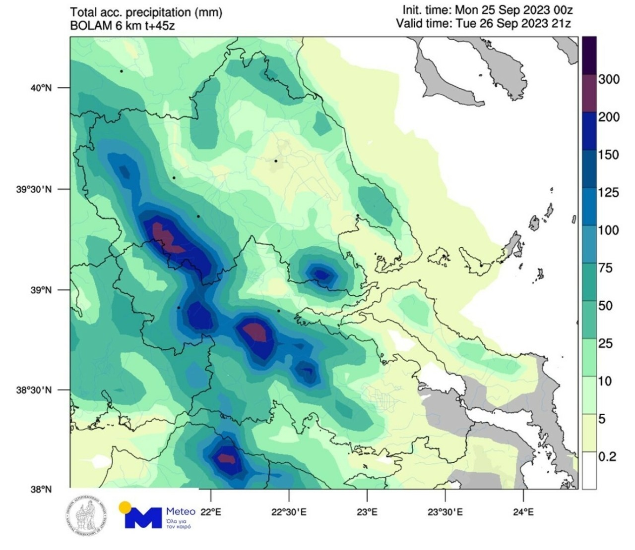 Την Τετάρτη (27-09-2023) κατά τόπους ισχυρές βροχές και καταιγίδες προβλέπονται στο Ιόνιο, την κεντρική και νότια ηπειρωτική χώρα (στη Θεσσαλία, τη Στερεά και την Πελοπόννησο), τις Σποράδες, την Εύβοια, τη δυτική Κρήτη και πιθανώς στις δυτικές Κυκλάδες. Επισημαίνεται ότι τα μεγαλύτερα ύψη βροχής θα σημειωθούν στους νομούς Καρδίτσας, Φθιώτιδας, στα ανατολικά τμήματα του νομού Μαγνησίας και στη βόρεια Εύβοια.