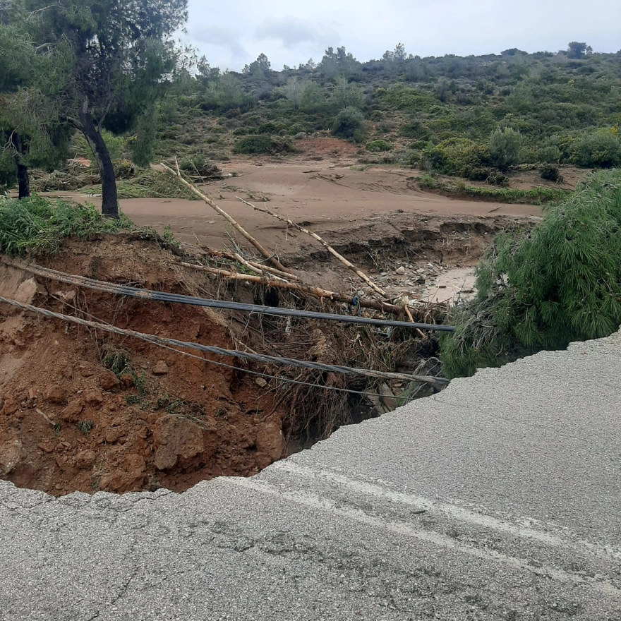 Συγκεκριμένα, το ρέμα που πέρασε από την περιοχή έκοψε τον δρόμο στη μέση, προκαλώντας σοβαρές ζημιές και καθιστώντας τη διέλευση αδύνατη.