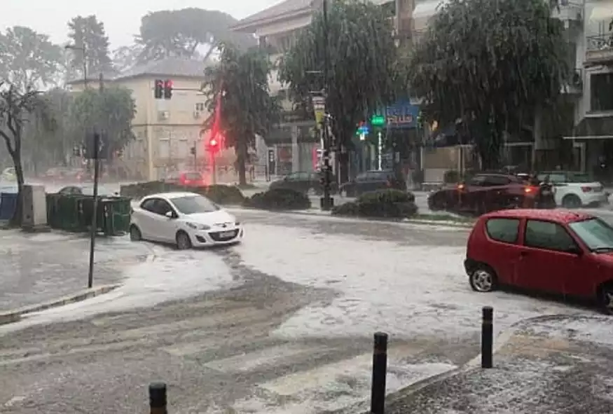 Πρωτοφανής χαλαζόπτωση εκδηλώθηκε το μεσημέρι του Σαββάτου στο κέντρο της πόλης των Ιωαννίνων, με το σκηνικό του καιρού μόνο με καλοκαίρι να μην μοιάζει.