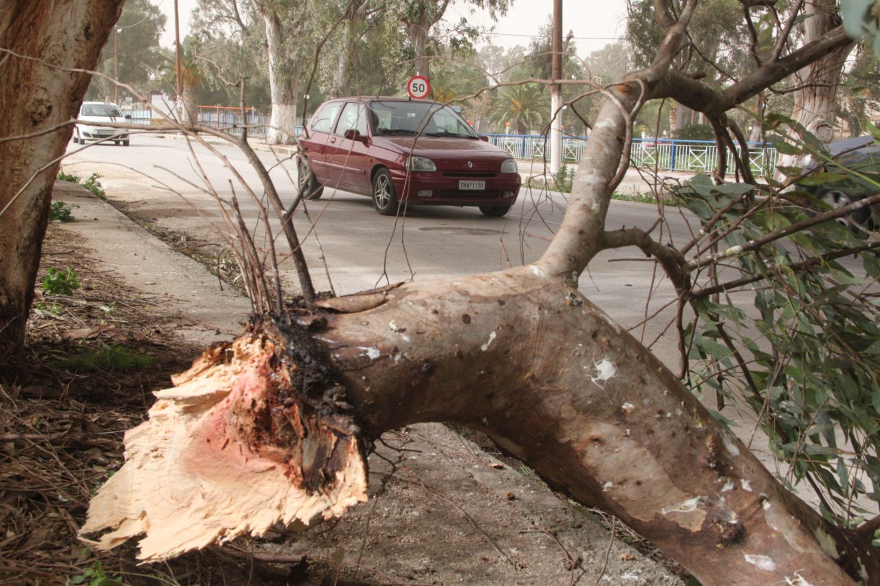 Όπως αναφέρεται από τη δημοτική αρχή, ένας πολύ μεγάλος πλάτανος στην κεντρική πλατεία της πόλης, παρ’ ότι μόλις πριν 4 μήνες είχε κλαδευτεί ακριβώς για να αποφευχθούν τέτοια προβλήματα, ξεριζώθηκε!