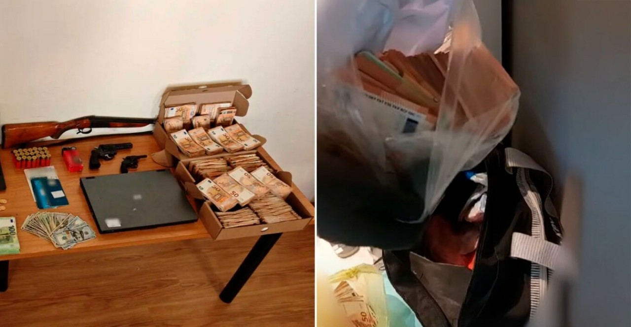Το ποσό που βρέθηκε… πρόχειρα τοποθετημένο μέσα σε σακούλες ανερχόταν στα περίπου 500.000 ευρώ, ενώ το συνολικό κέρδος της εγκληματικής οργάνωσης έφτανε τα 5 εκατ. ευρώ. Εκτός από τα μετρητά που κατασχέθηκαν από την ΕΛ.ΑΣ. βρέθηκαν επίσης τραπεζικές επιταγές, πλήθος τιμολογίων, βιβλιάρια τραπεζικών συναλλαγών, 2 περίστροφα, μαχαίρι τύπου στιλέτο, κυνηγετικό τυφέκιο, 652 δολάρια, 32 λίρες Αγγλίας, πλήθος τραπεζικών καρτών, πλήθος σφραγίδων.