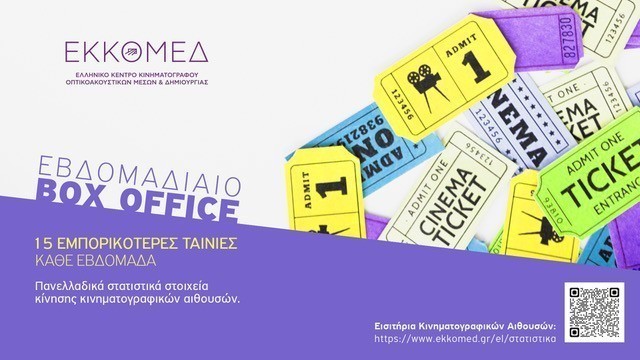 Το ΕΚΚΟΜΕΔ, στο πλαίσιο του στρατηγικού του ρόλου για την εποπτεία και την ενίσχυση της εγχώριας κινηματογραφικής αγοράς, ανακοινώνει την έναρξη τακτικής εβδομαδιαίας δημοσίευσης των στατιστικών στοιχείων κίνησης των κινηματογραφικών αιθουσών πανελλαδικά.