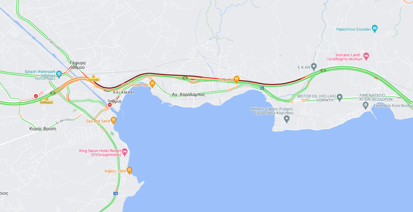 – Στη παλαιά Εθνική Οδό Αθηνών – Κορίνθου, από Αθήνα έως Αγίους Θεοδώρους και από Αγίους Θεοδώρους έως Αθήνα, η κυκλοφορία των οχημάτων διεξάγεται κανονικά.