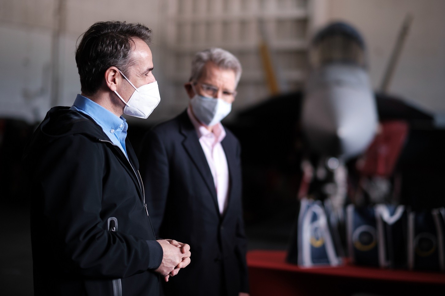 Ο Κυριάκος Μητσοτάκης αρχικά επισκέφθηκε υπόστεγο όπου φυλάσσεται ελικόπτερο MH-60R «Romeo», ένα από τα πλέον σύγχρονα ελικόπτερα του αμερικανικού Ναυτικού. Η Ελλάδα έχει υπογράψει σύμβαση για την απόκτηση τεσσάρων τέτοιων ελικοπτέρων σε πρώτη φάση, συν ακόμα τρία στη συνέχεια. Τα πρώτα θα παραληφθούν στα μέσα του 2022. Ο πρωθυπουργός ενημερώθηκε από το πλήρωμα για τις ποικίλες επιχειρησιακές δυνατότητες του αεροσκάφους και για τον χειρισμό του.