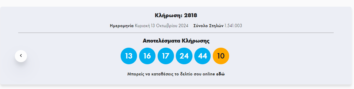Οι τυχεροί αριθμοί στην κλήρωση Τζόκερ σήμερα είναι οι 13, 16, 17, 24, 44 και τζόκερ ο αριθμός 10.