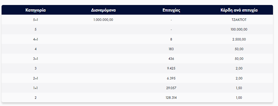 Στην πρώτη κατηγορία σημειώθηκε τζακ ποτ.