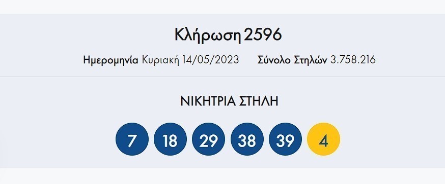 Οι τυχεροί αριθμοί σε αυτή την κλήρωση Τζόκερ είναι οι 7, 18, 29, 38, 39 και Τζόκερ ο αριθμός 4.