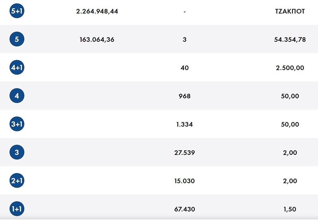 Στην πρώτη κατηγορία σημειώθηκε τζακ ποτ.