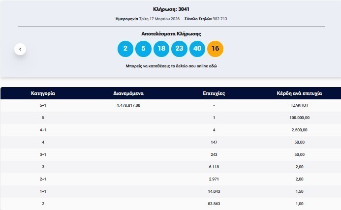 Στην πρώτη κατηγορία σημειώθηκε νέο τζάκποτ!