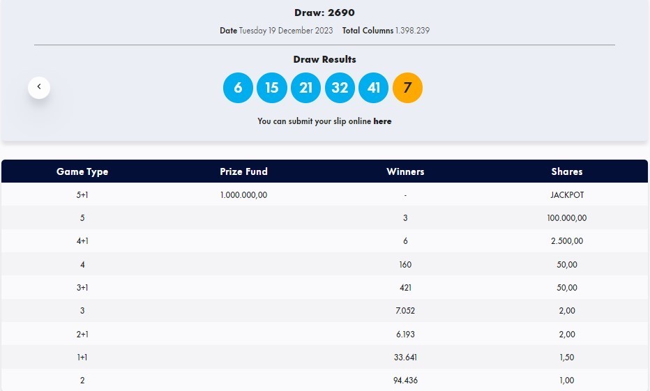 Oλοκληρώθηκε η κλήρωση του Τζόκερ που πραγματοποιήθηκε την Τρίτη, 19 Δεκεμβρίου 2023, με κέρδη τουλάχιστον 1.000.000 ευρώ.
