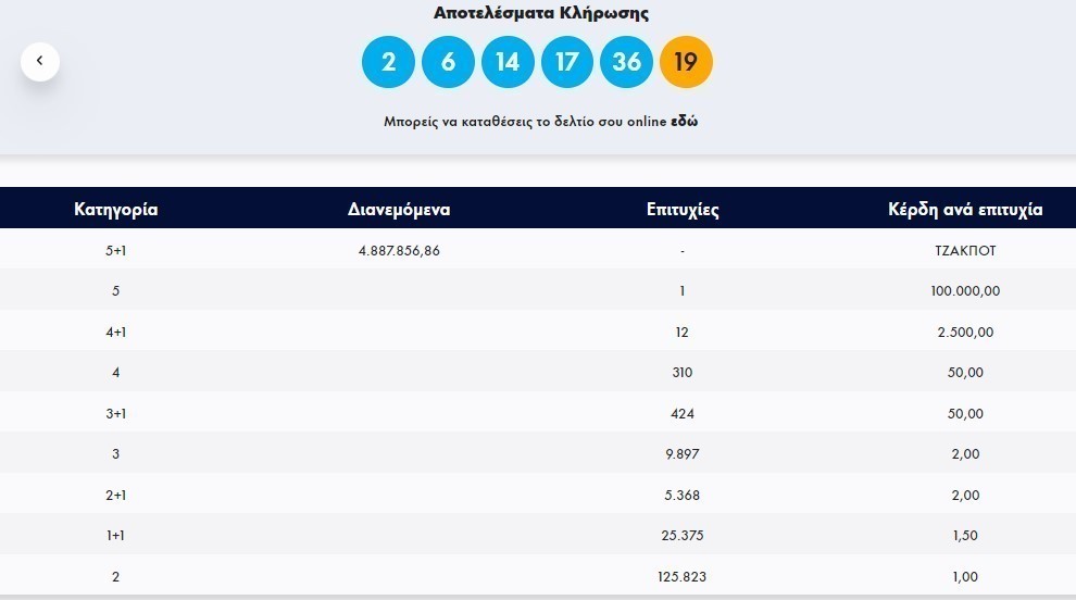 Οι τυχεροί αριθμοί στην κλήρωση Τζόκερ σήμερα είναι: 2, 6, 14, 17, 36 και τζόκερ ο αριθμός 19.
