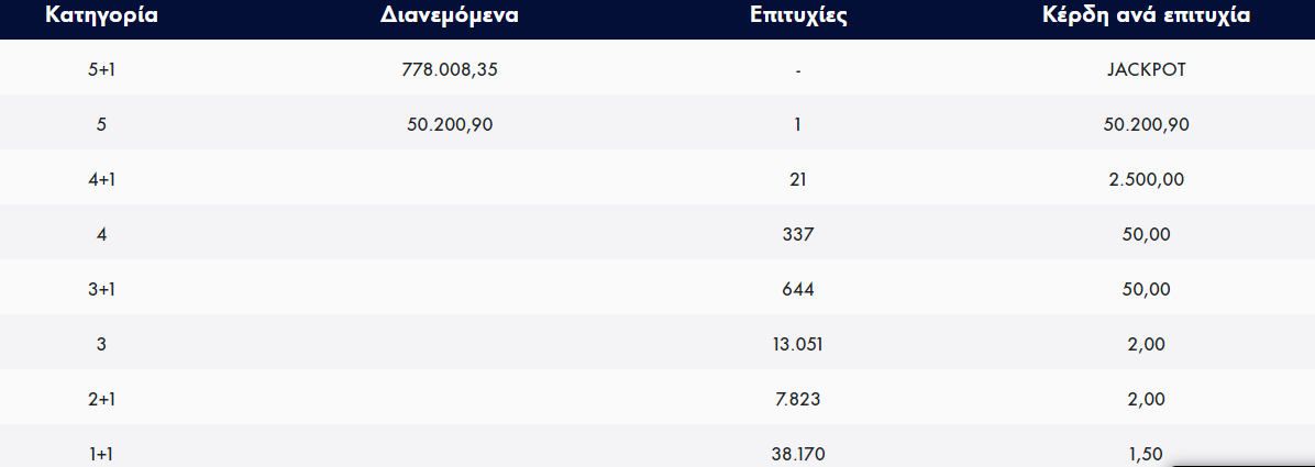 Στην πρώτη κατηγορία σημειώθηκε τζακ ποτ.