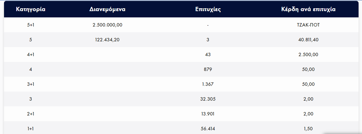 Oλοκληρώθηκε η κλήρωση του Τζόκερ που πραγματοποιήθηκε την Κυριακή, 4 Ιουνίου 2023 και μοίραζε €2.500.000 στους νικητές της πρώτης κατηγορίας.