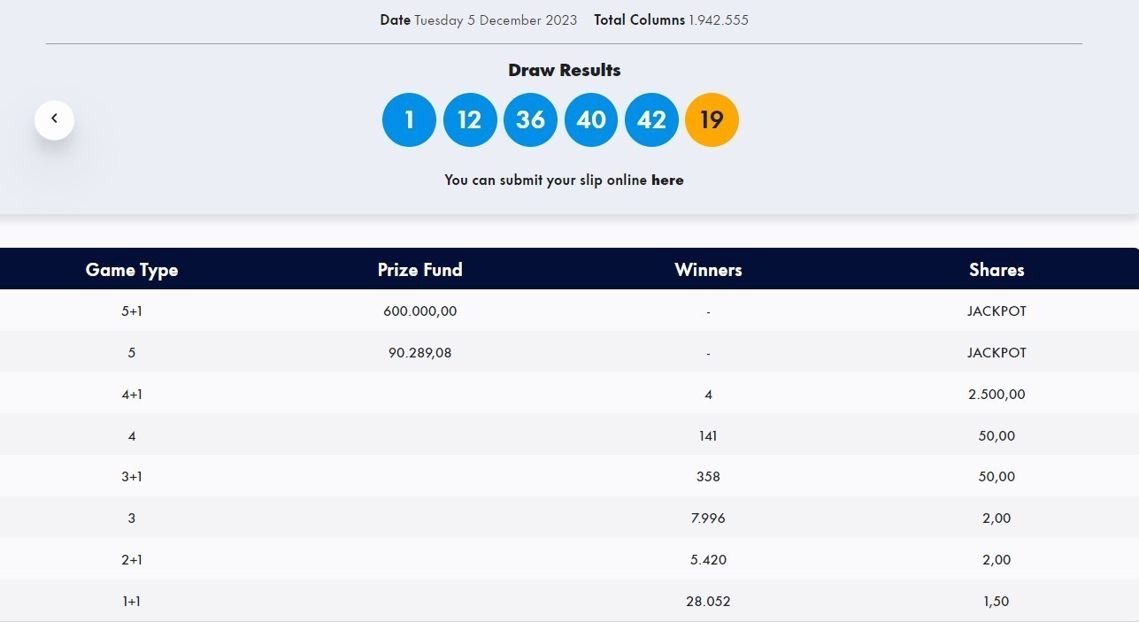 Oλοκληρώθηκε η κλήρωση του Τζόκερ που πραγματοποιήθηκε την Τρίτη, 5 Δεκεμβρίου 2023, με κέρδη τουλάχιστον 600.000 ευρώ.