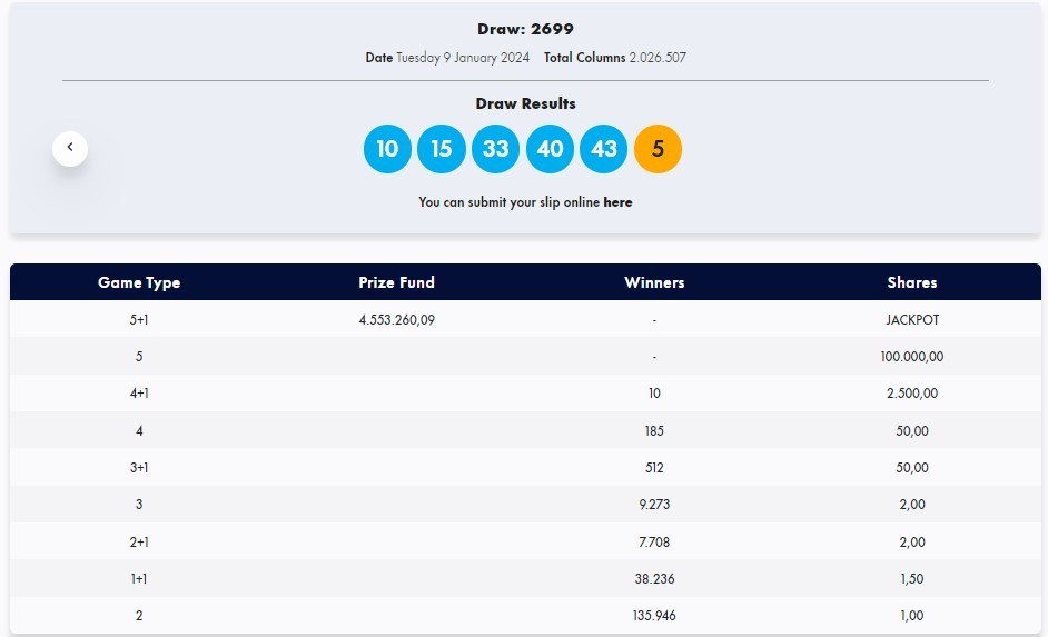 Oλοκληρώθηκε η κλήρωση του Τζόκερ που πραγματοποιήθηκε την Τρίτη, 9 Ιανουαρίου 2024, με κέρδη τουλάχιστον 4.500.000 ευρώ.