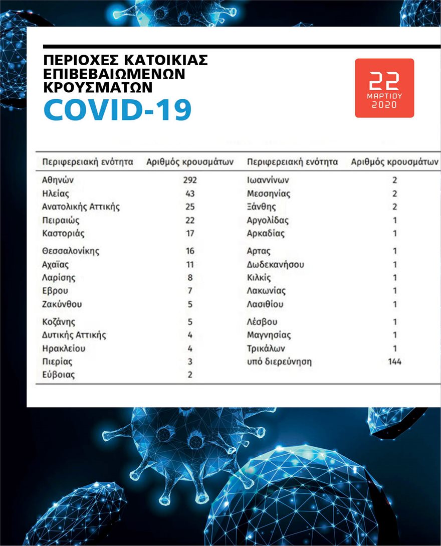Δείτε τον χάρτη της πανδημίας στην Ελλάδα.