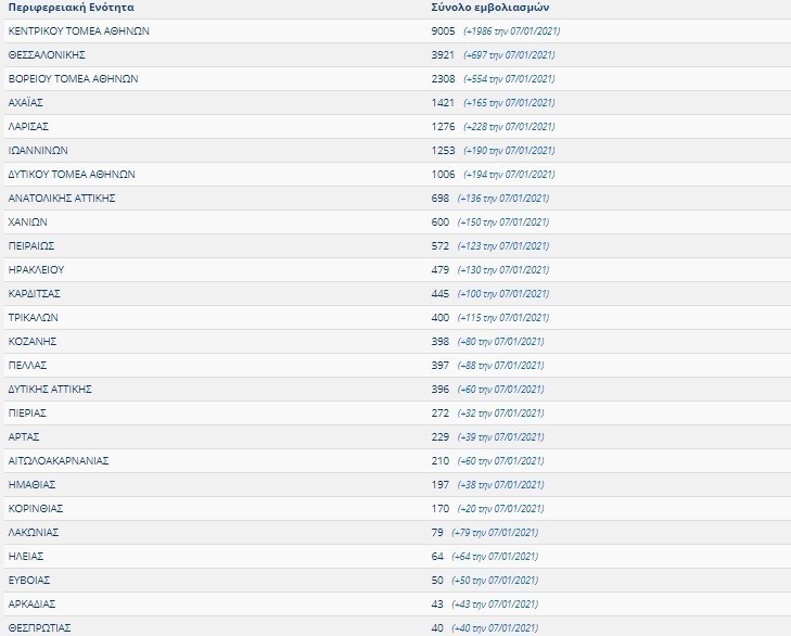 Δείτε online εδώ τη σελίδα με τα στοιχεία του εμβολιασμού στην Ελλάδα