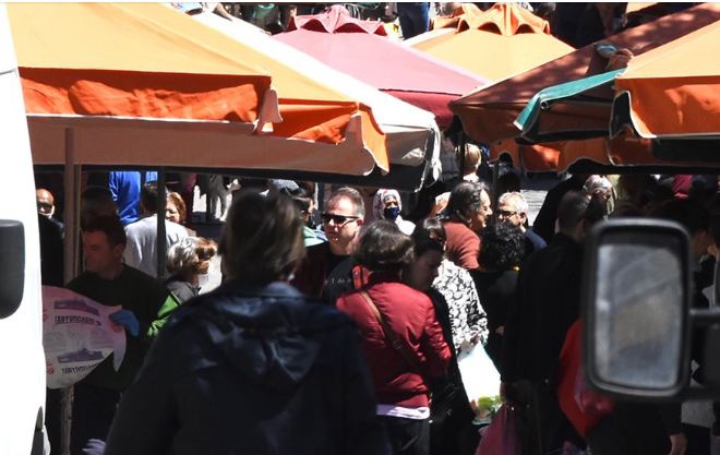 Στις λαϊκές αγορές σήμερα, Μεγάλη Παρασκευή, επικρατεί το αδιαχώρητο για πολλοστή φορά με τους δημότες να μην υπολογίζουν ούτε τον κορωνοιο ούτε τις αυστηρές συστάσεις προκειμένου να κρατούν τις αποστάσεις για την αποφυγή διασποράς του ιού.