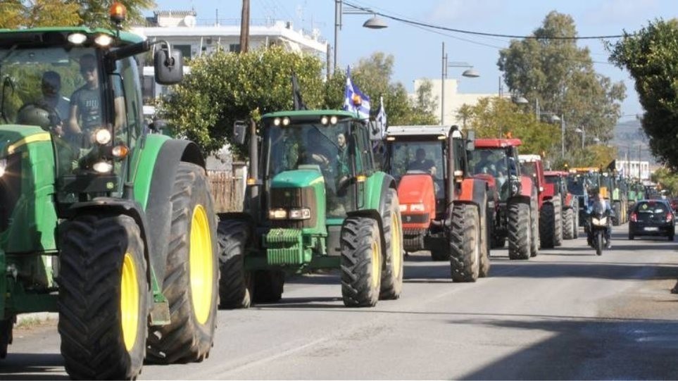 Συλλαλητήριο διαμαρτυρίας στον Κόμβο Πλατυκάμπου, πραγματοποιούν οι πληγέντες από την κακοκαιρία αγρότες.