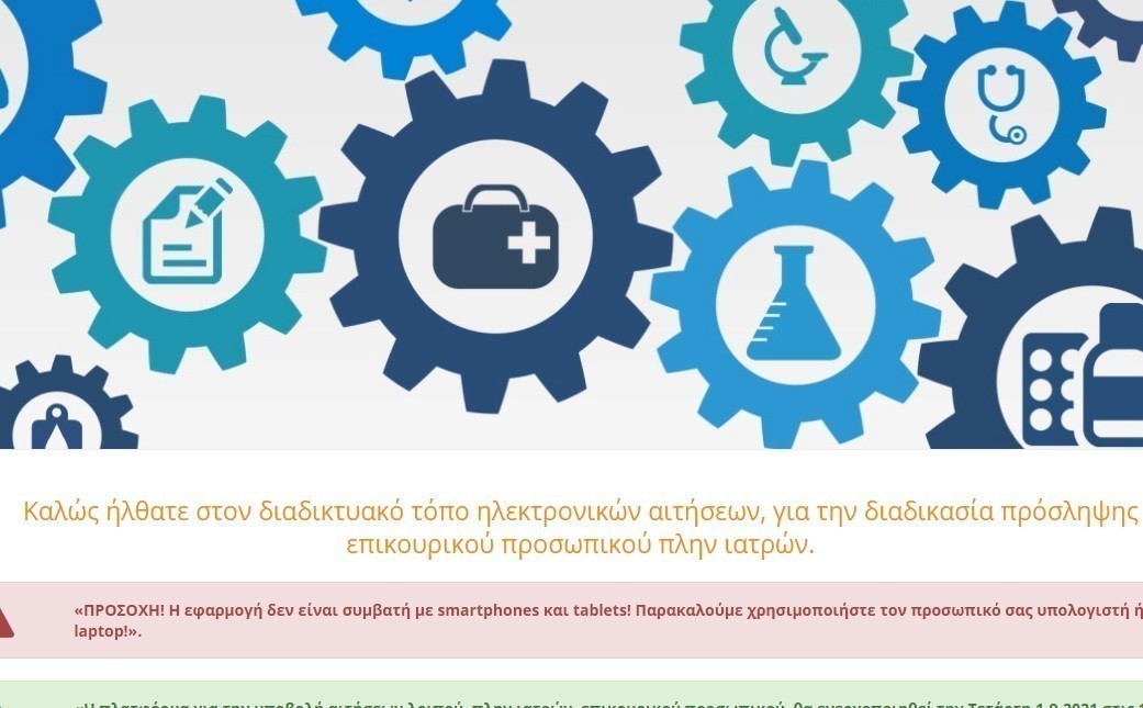 Οι ενδιαφερόμενοι μπορούν να υποβάλλουν τις αιτήσεις τους στο https://loipoepikouriko.moh.gov.gr/Home.aspx