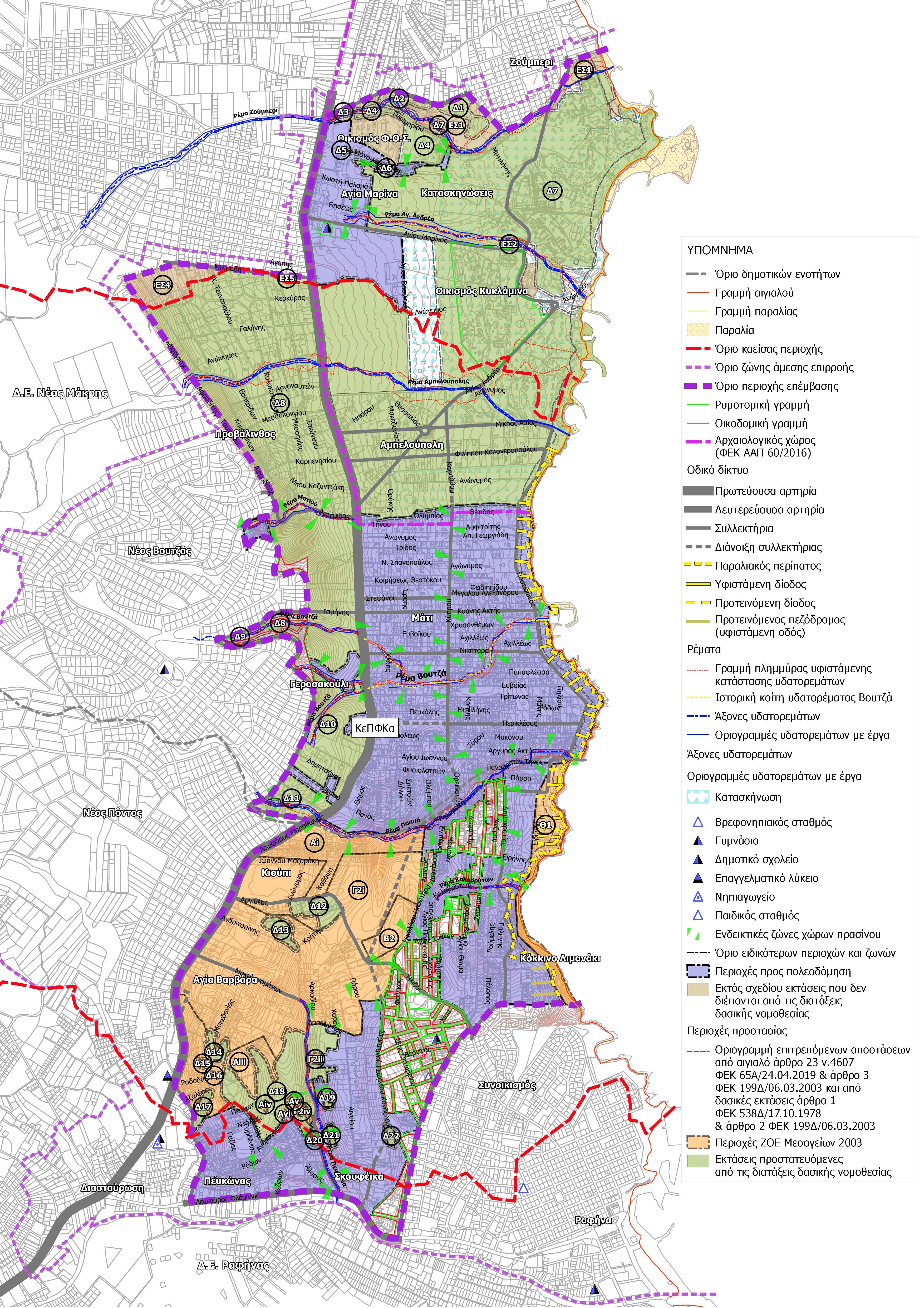 Έτσι, η αναλογία δημόσιου κοινόχρηστου χώρου και πράσινου ως προς τη συνολική επιφάνεια αυξάνεται κατά 21,93% ενώ τα οριοθετημένα ρέματα, αφορούν σε ποσοστό 1,53% της συνολικής έκτασης.