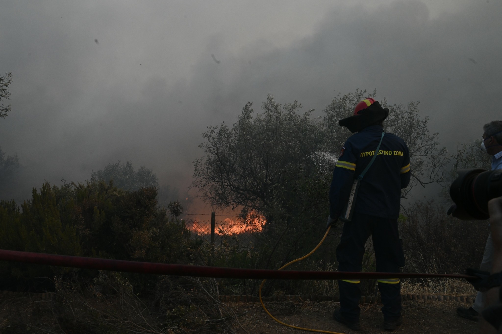 Σύμφωνα με τον εκπρόσωπο της Πυροσβεστικής, η φωτιά εξελίσσεται προς τη λίμνη του Μαραθώνα.