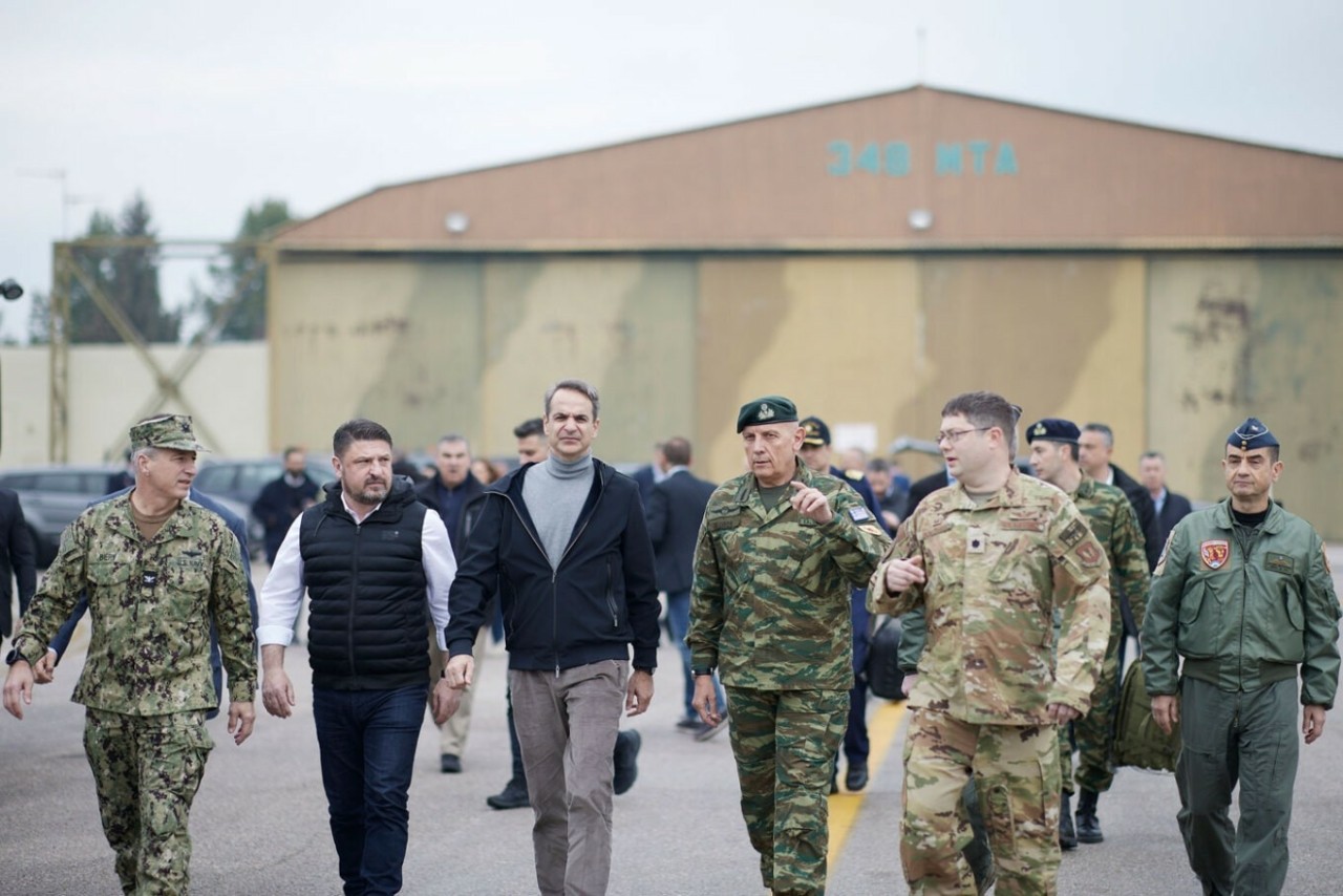 Ο Πρωθυπουργός Κυριάκος Μητσοτάκης επισκέφθηκε το πρωί την 110 Πτέρυγα Μάχης (ΠΜ) στην Αεροπορική Βάση Λάρισας, πρώτο σταθμό της επίσκεψης που πραγματοποιεί σήμερα στη Λάρισα.