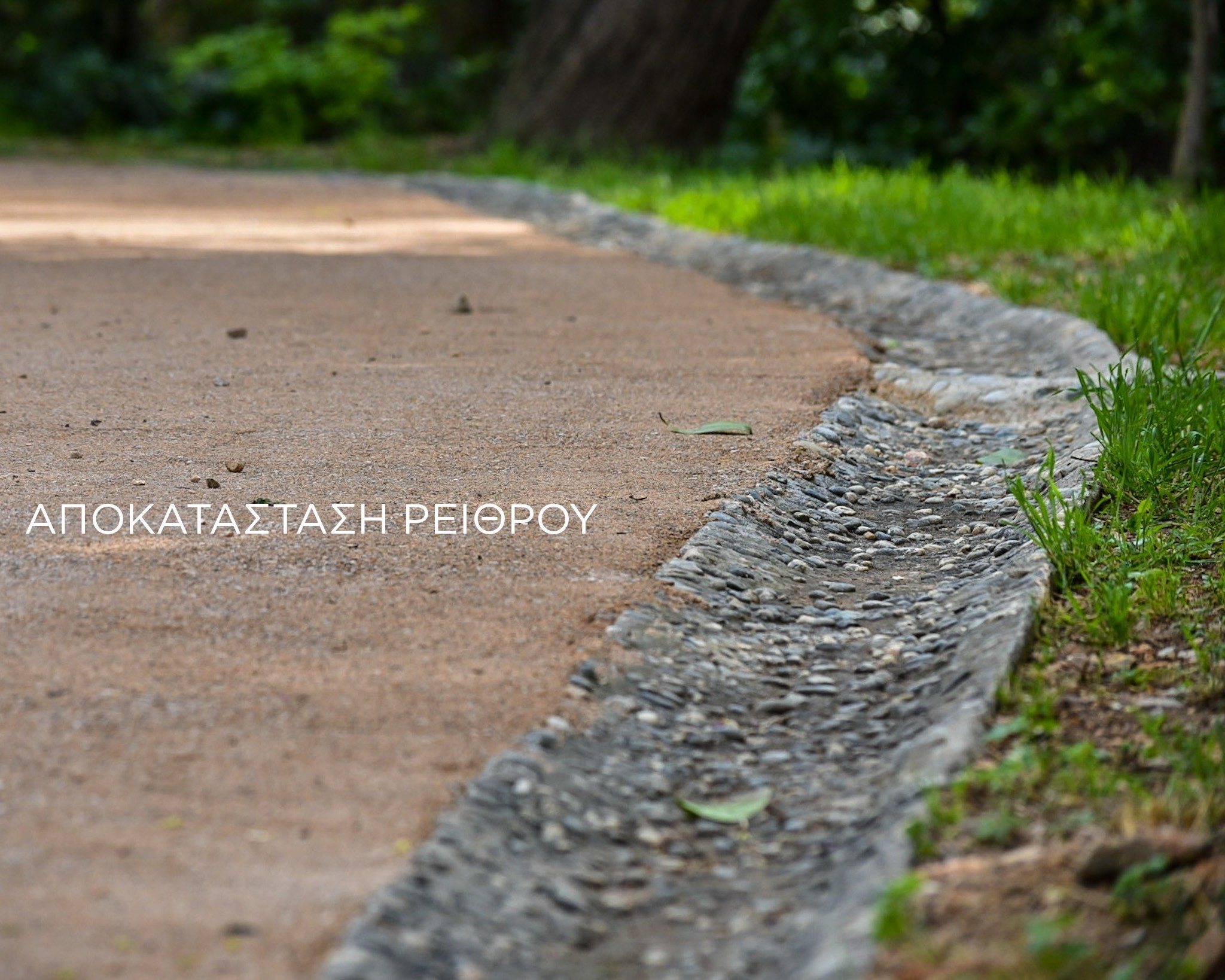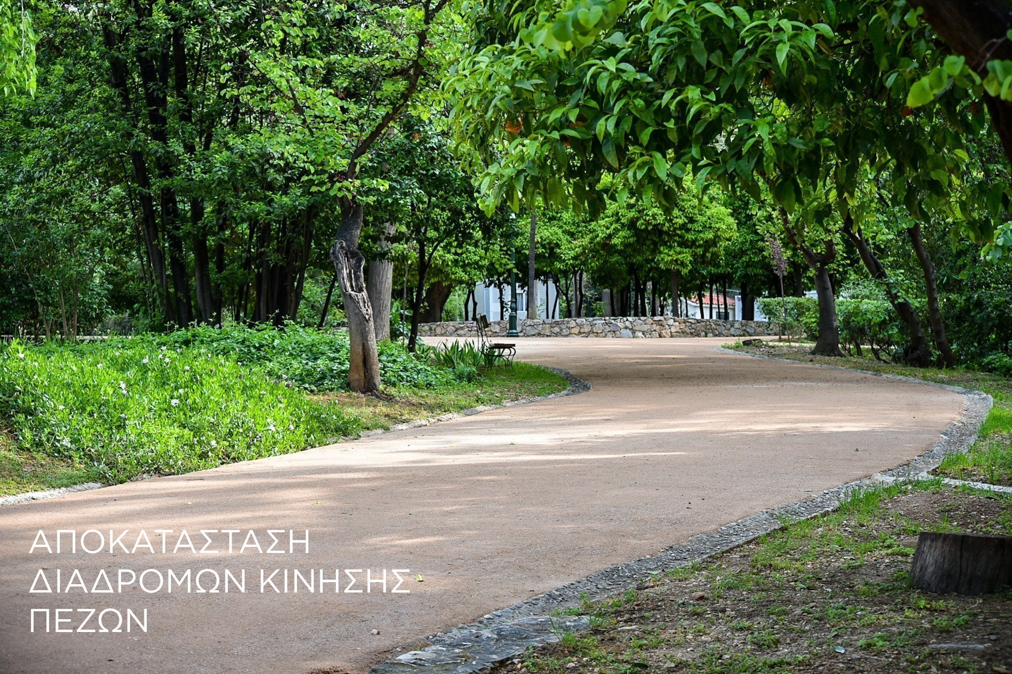 Με σεβασμό στην ιστορικότητα του χώρου, που μετρά 186 χρόνια από την οριοθέτησή του, και με βάση τις αρχές της ανθεκτικότητας, ανακατασκευάστηκαν τα μονοπάτια και οι διάδρομοι. Για τον σκοπό αυτό, έγινε χρήση σταθεροποιημένου χωμάτινου δαπέδου, προκειμένου να αποκατασταθούν οι σημαντικές φθορές που είχαν εμφανιστεί από το χρόνο και τη διάβρωση.