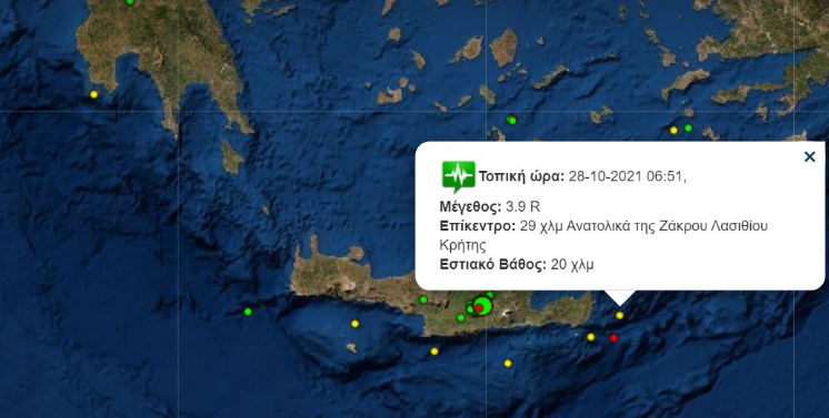 Πιο συγκεκριμένα, ο σεισμός σημειώθηκε 29 χιλιόμετρα ανατολικά της Ζάκρου ενώ το εστιακό του βάθος υπολογίστηκε στα 20 χιλιόμετρα.