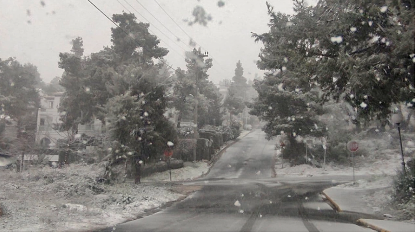 Από χθες το βράδυ χιονίζει στα Δερβενοχώρια και τα Βίλια Αττικής.