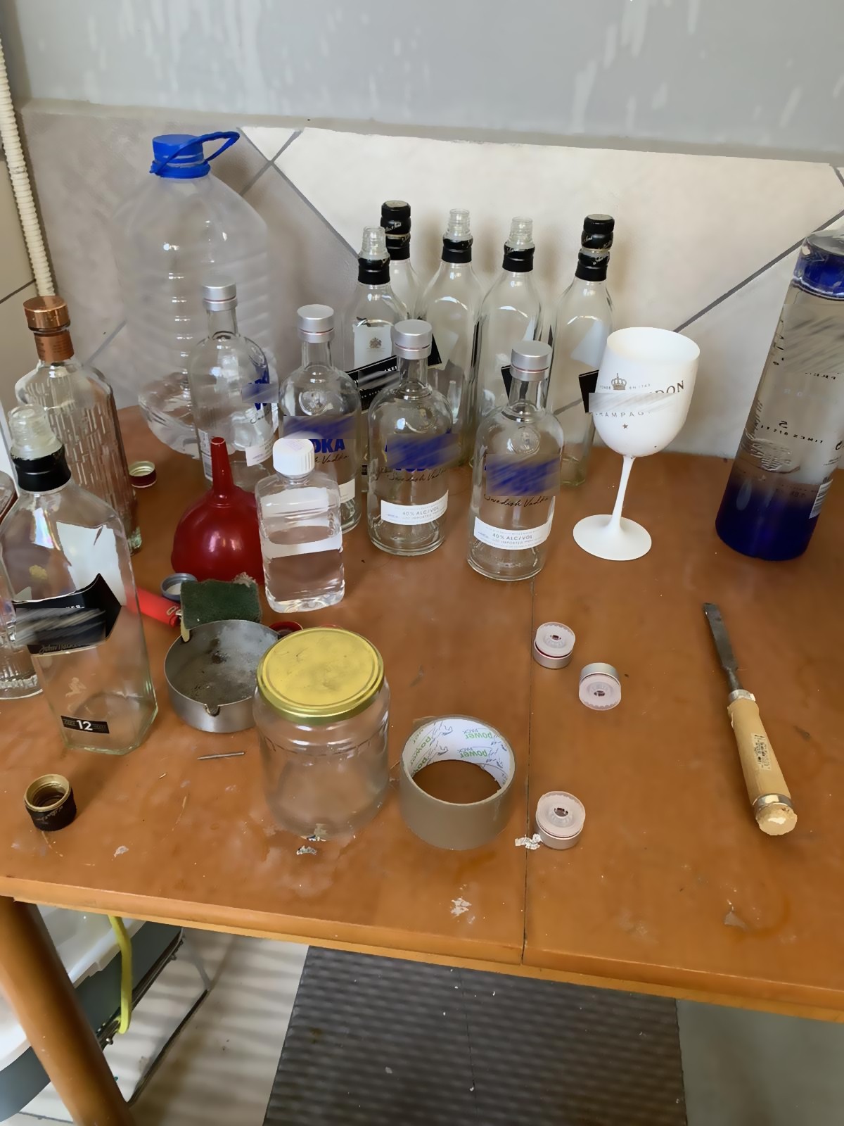 Στα σημεία ελέγχου κατασχέθηκαν μηχανήματα εμφιάλωσης, πλήρωσης φιαλών, αντλίες με αντίστοιχα φίλτρα καθαρισμού ύδατος, 1.380 πλαστές αυτοκόλλητες ετικέτες και 706 πλαστά πώματα επώνυμων αλκοολούχων ποτών, 40 χαρτοκιβώτια συσκευασίας και 2.249 κενές φιάλες επώνυμων αλκοολούχων ποτών (έτοιμες προς πλήρωση), εργαλεία κόλλησης ετικετών, καθώς και συνολικά 430lt αλκοολούχων ποτών που εμπεριέχονταν σε 382 τεμάχια φιαλών αλκοολούχων ποτών επώνυμων εταιριών ευρείας κατανάλωσης, PET και δεξαμενές, έτοιμα προς διάθεση.